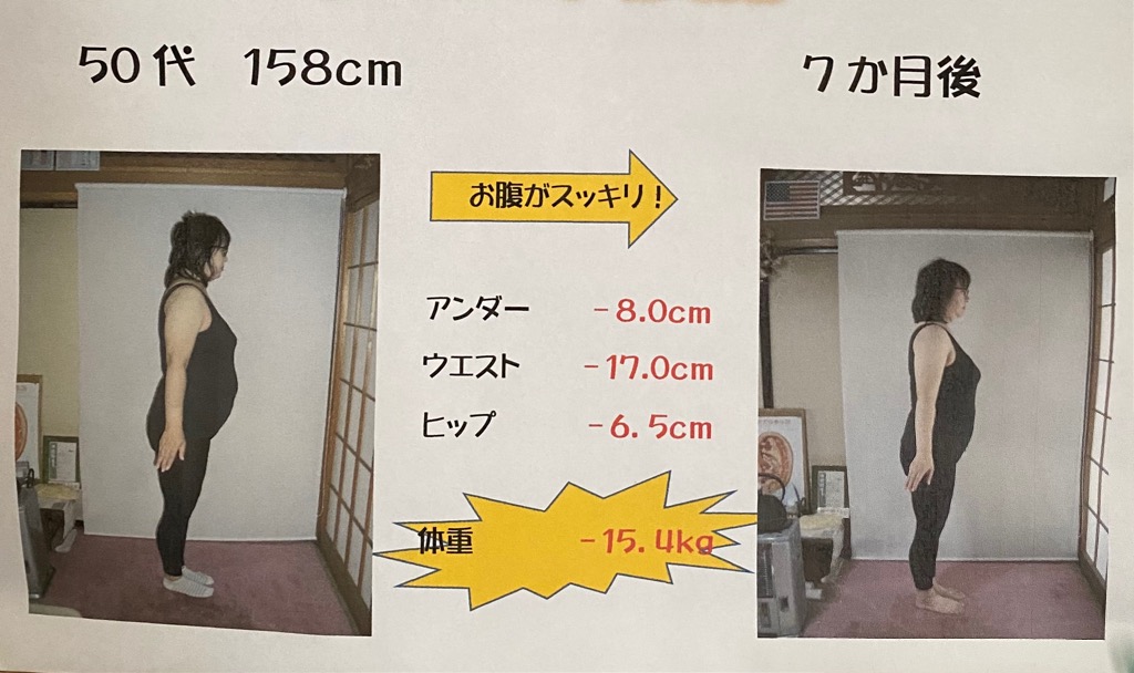 7ヶ月で15、4kg減り、ウエストはなんと17cmの減です。